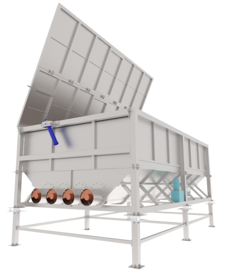 LBB60 (Live Bottom Bin)Buffering, storage, controlled discharge of solidsHomogeneous flow, buffer storage, consistent dischargePositioned upstream of conveyors or feeders